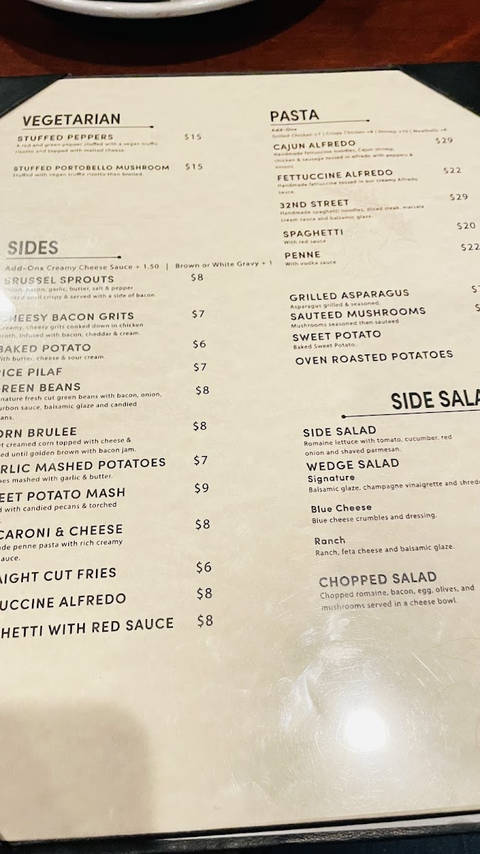 Cut in house single bone in chop stuffed with house made bacon jam & smoked gouda wrapped in candied bacon.